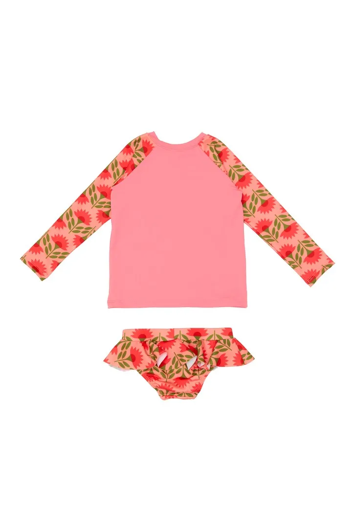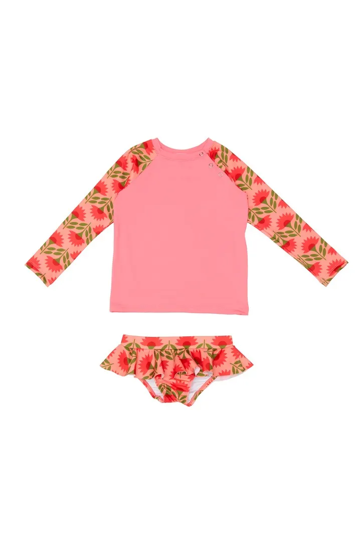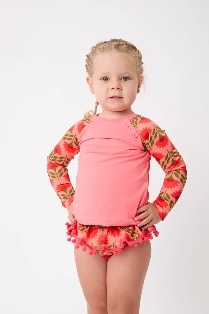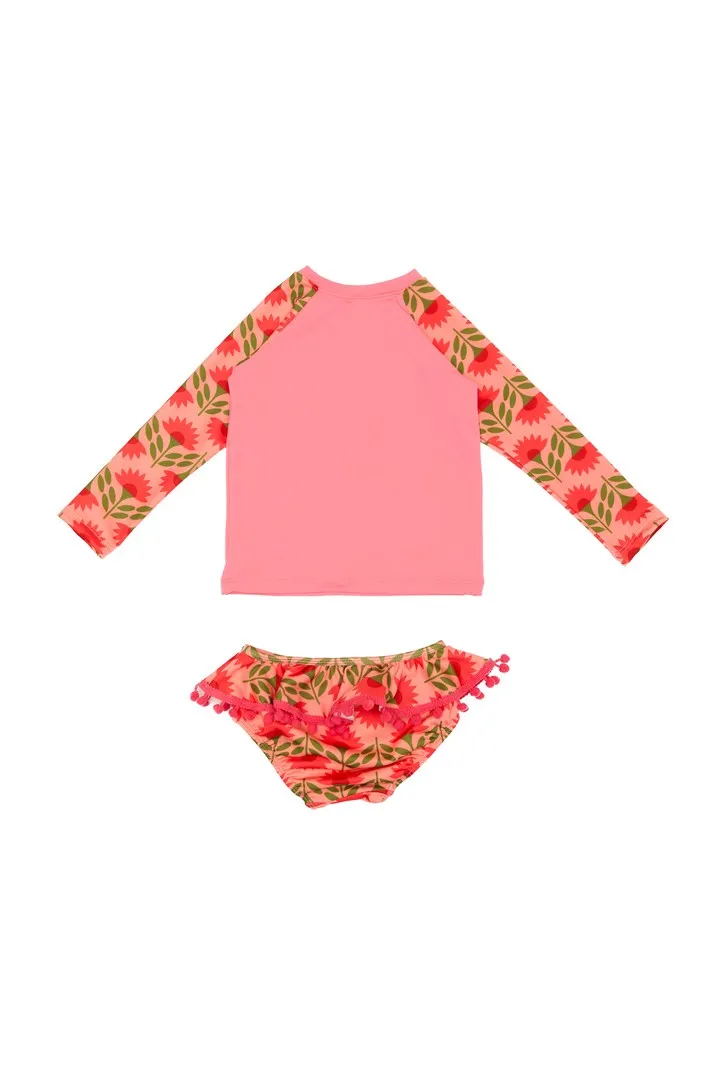 Polo manga larga con botones en parte delantera superior para fácil cambiado. Calzón con bobos. Protección UPF 50+.