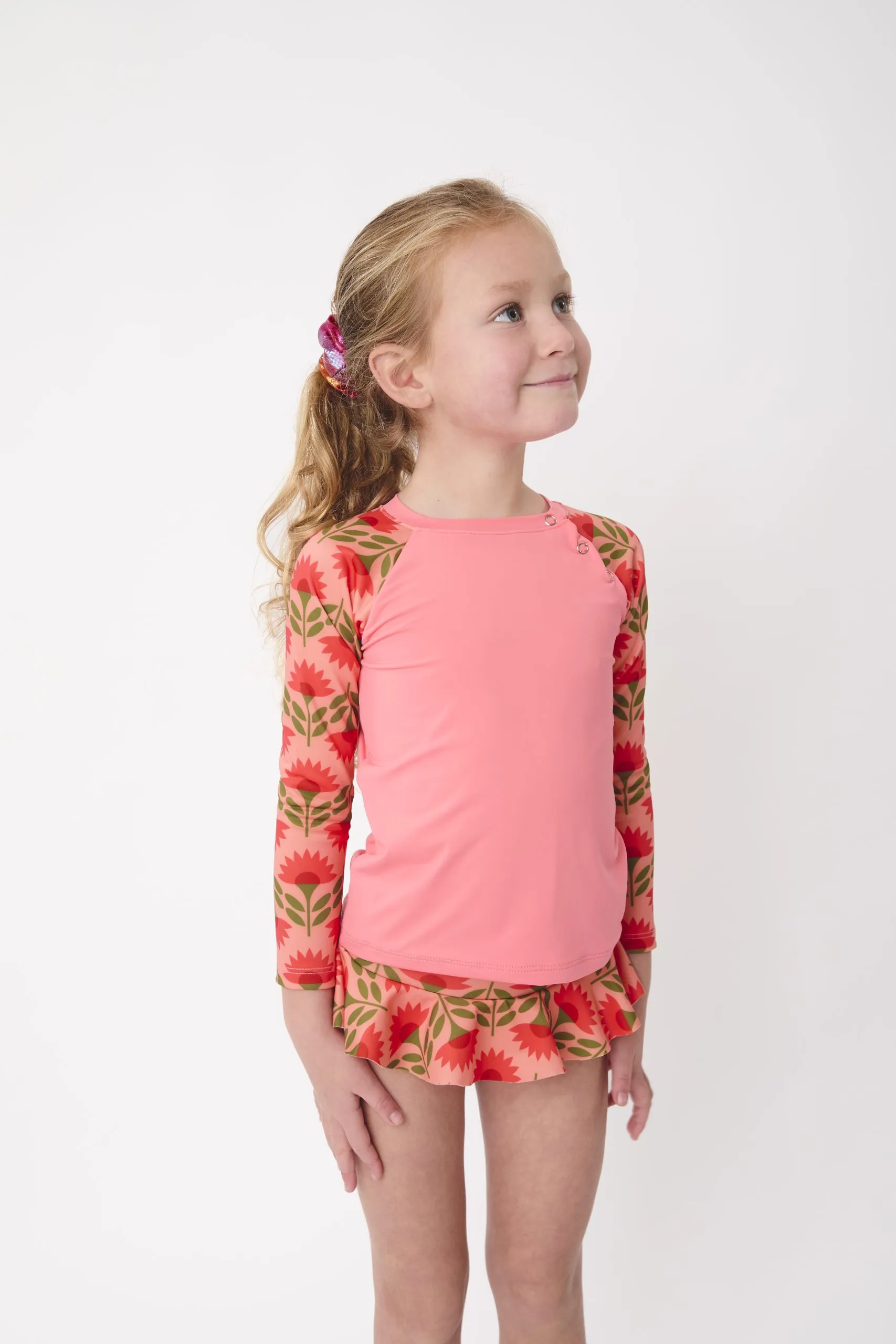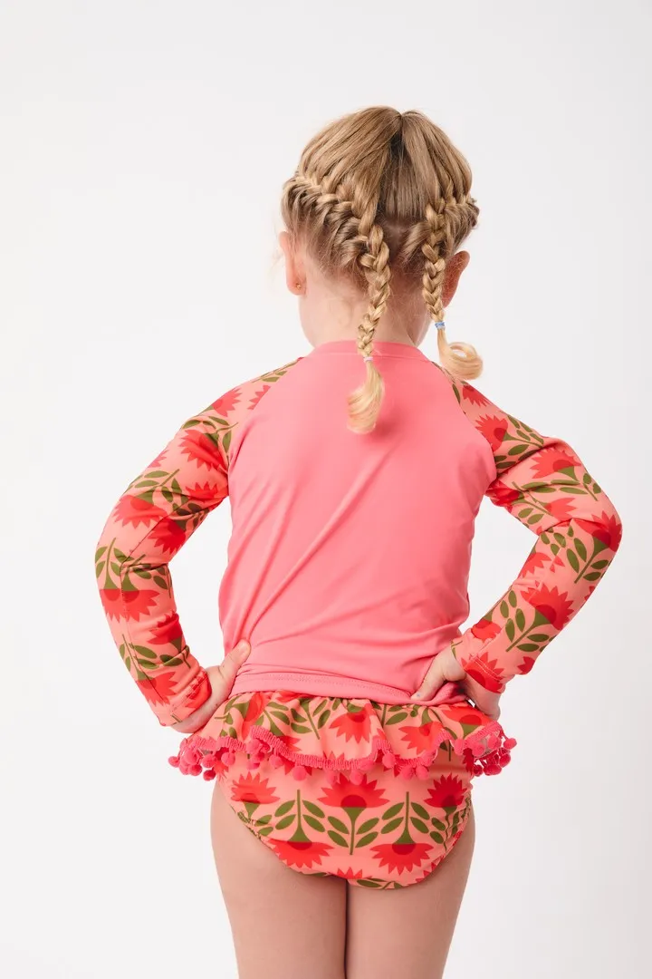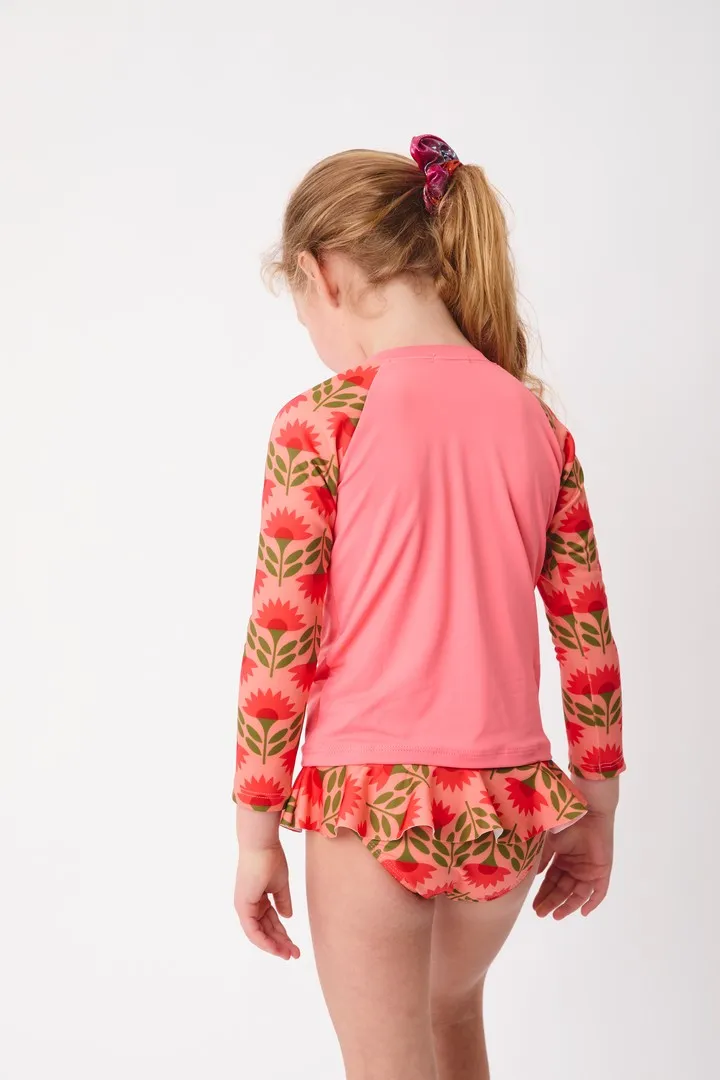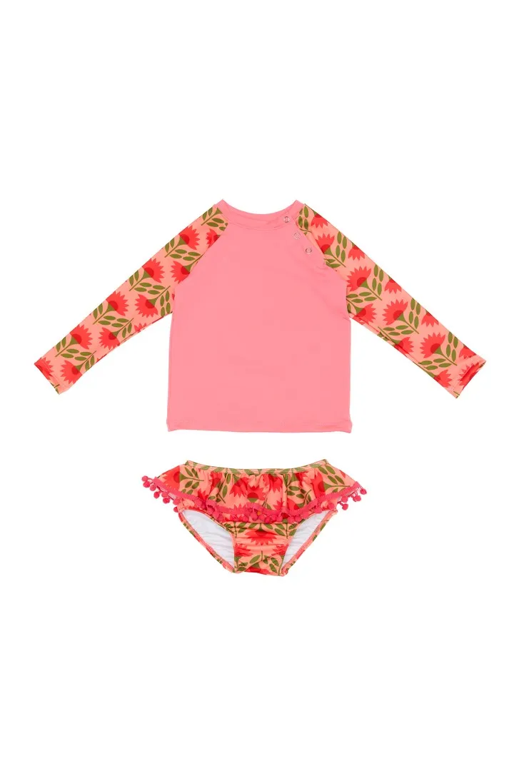 Polo manga larga con botones en parte delantera superior para fácil cambiado. Calzón con bobos. Protección UPF 50+.