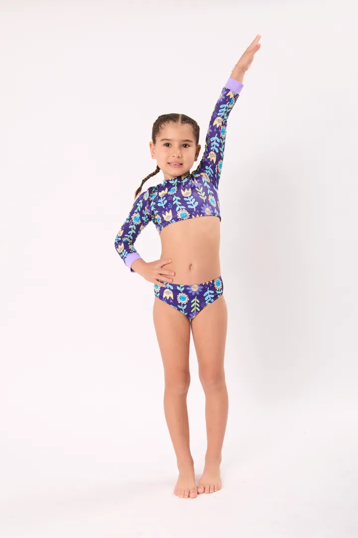 Bikini manga larga con espalda cerrada y cierre en parte trasera de la espalda. Calzón sin pitas. Protección UPF 50+.