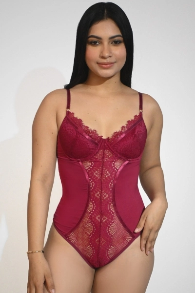 Nuestro Body Gina Vinotinto es perfecto por su silueta clásica en lycra. Tiene varillas y forro interno en los senos por lo cual podrás utilizarlo de forma exterior sin ningún problema. Delicado encaje en la zona del abdomen. Su espalda tiene una delicada abertura en U, la cual puede ajustarse. Sus herrajes son bañados en oro y tiene cargaderas ajustables.