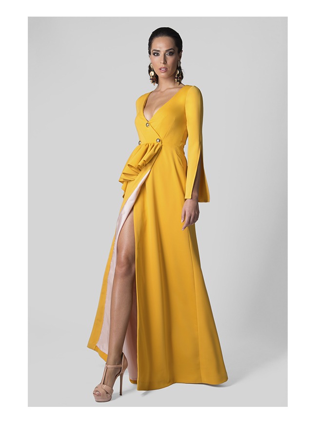 Disponible en mostaza tallas 38, rojo tallas 42, 44 y azul cobalto tallas 38 y 42.