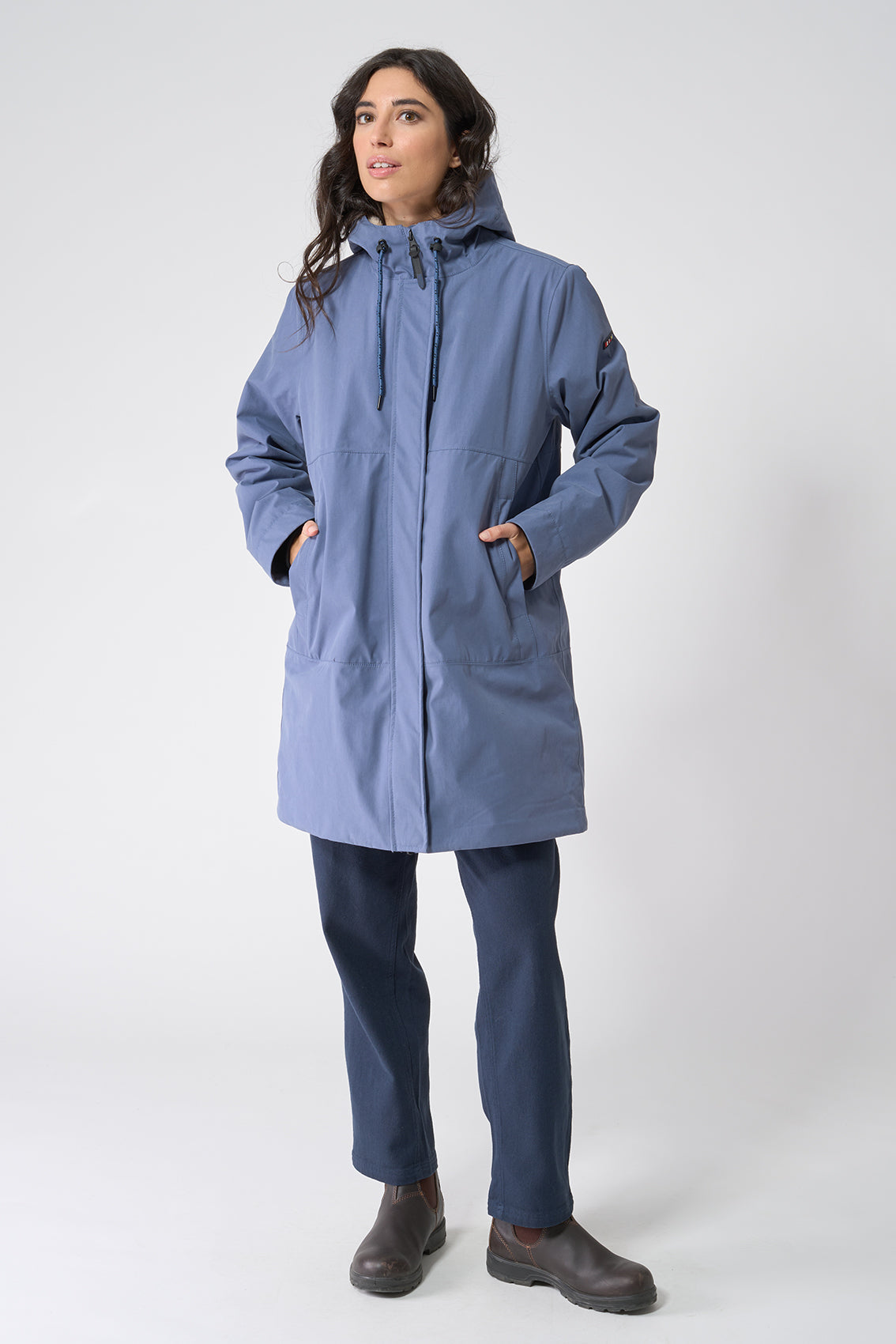 Bolsillos ribeteados para las manos cerrados con cremallera impermeable.