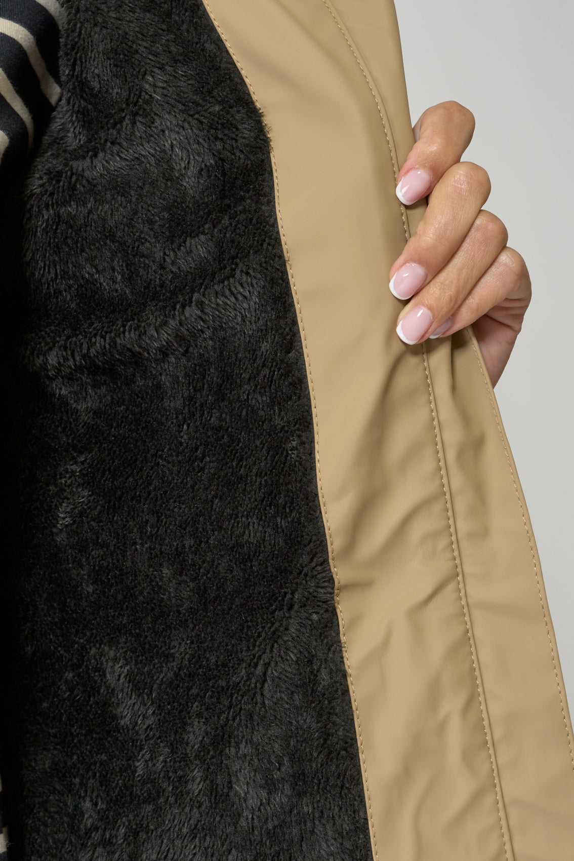 Descubre la máxima protección y comodidad con nuestro exclusivo Chubasquero de mujer con forro polar de pelo largo en el interior. ¡Este atrevido y funcional chubasquero es el aliado perfecto para desafiar la tormenta y el frío con estilo!