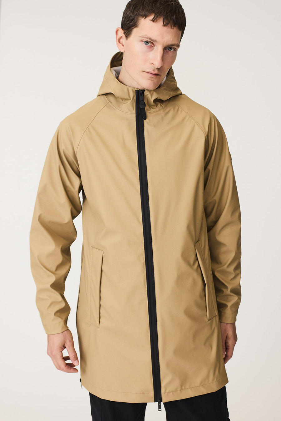 • Capucha con cordón ajustable, visera incorporada y cuello alto.