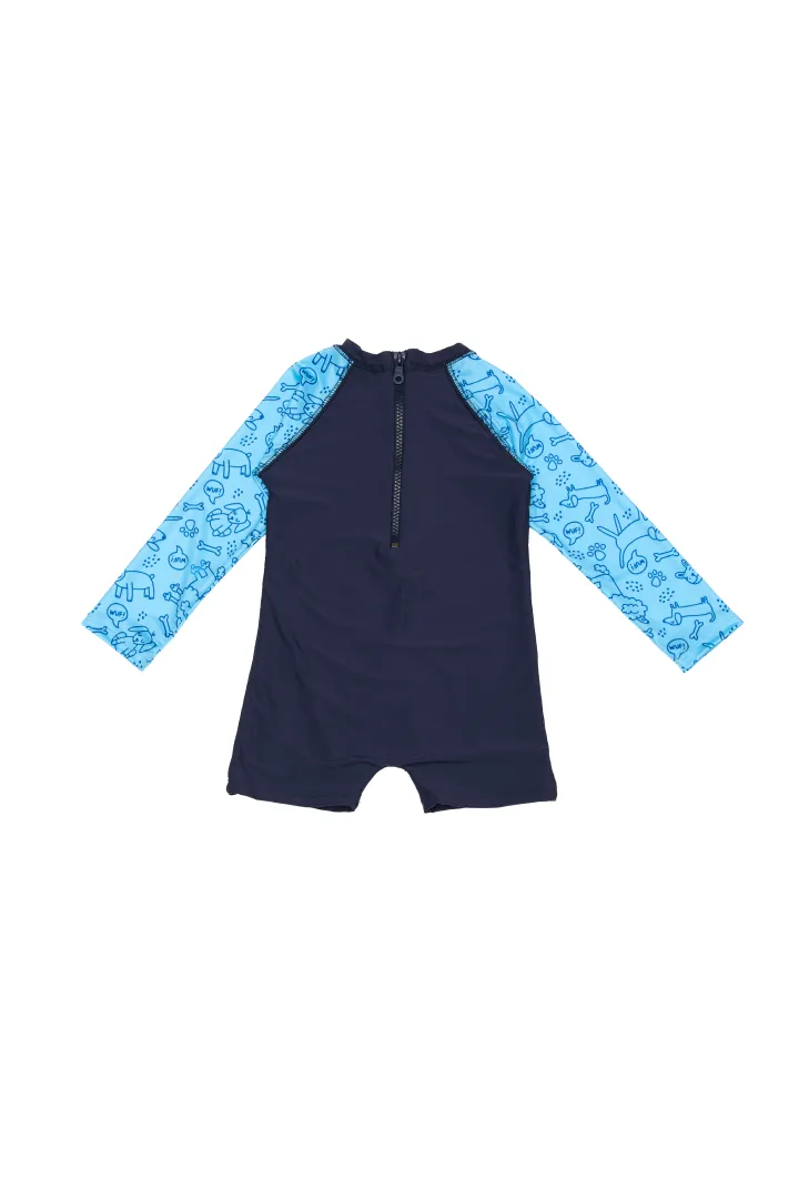 Enterizo de lycra que cubre brazos y piernas hasta encima de la rodilla, todo en uno. Cierre en parte trasera. Protección UPF 50+.