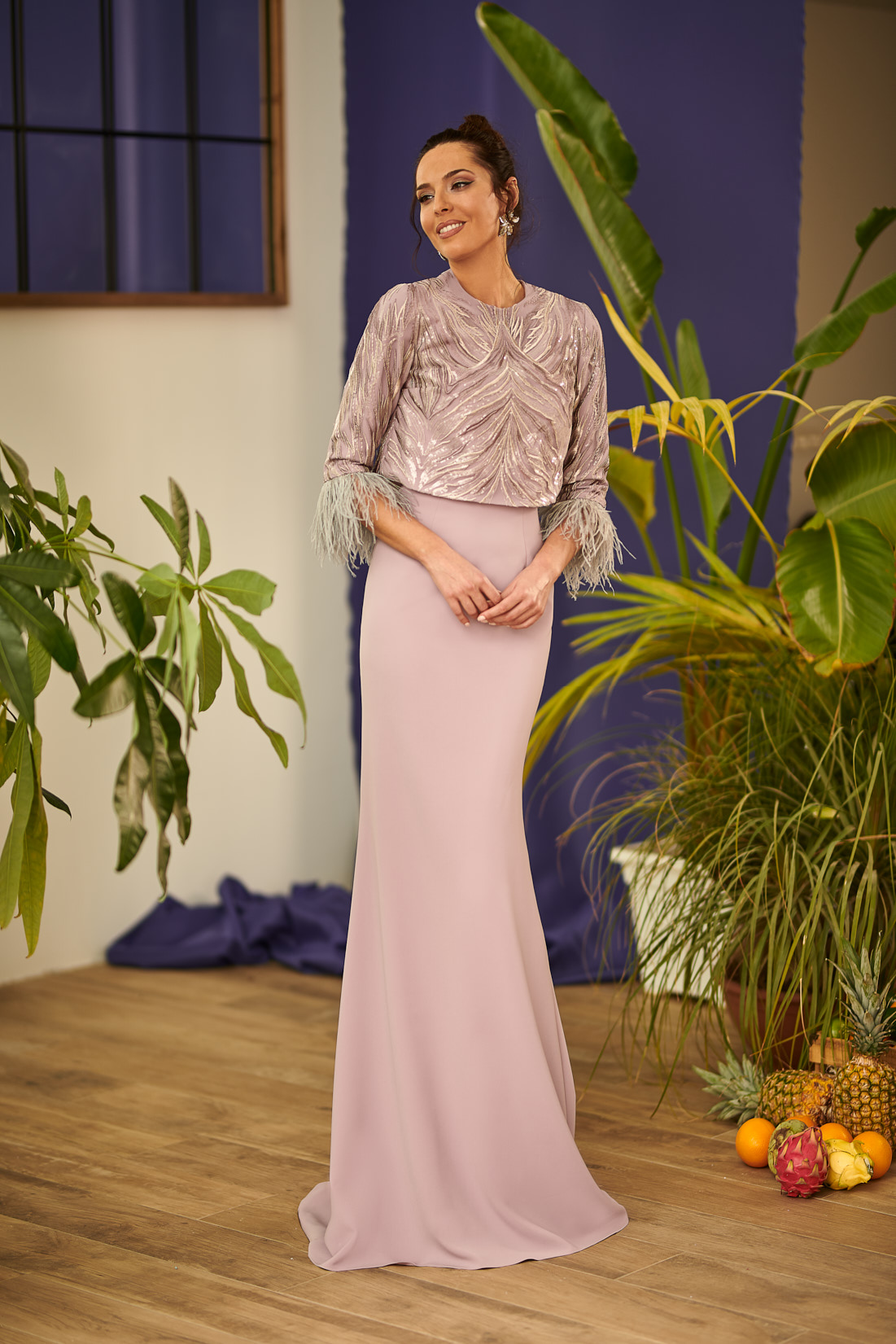 Vestido largo con chaquetilla.