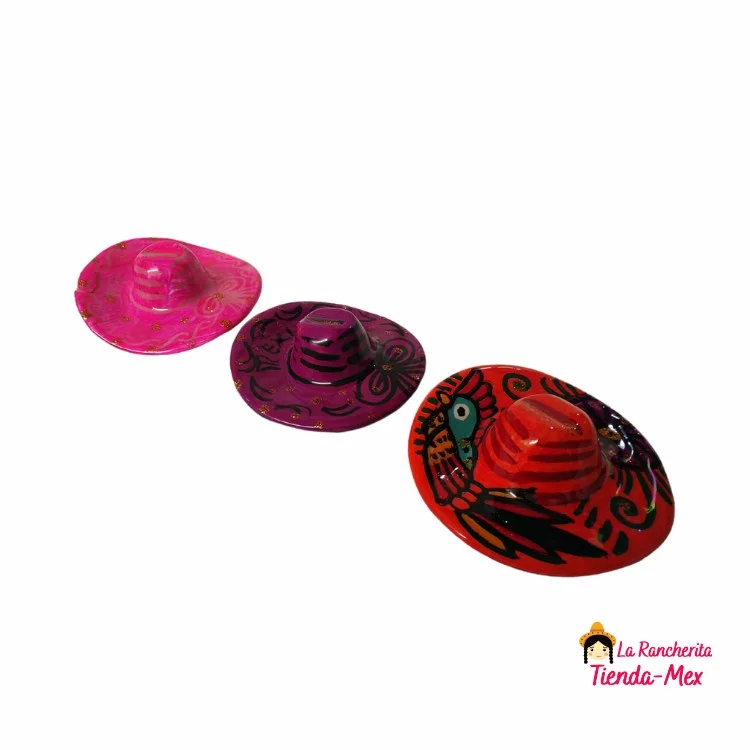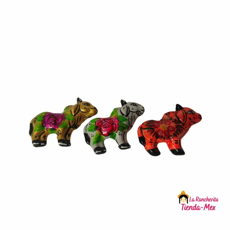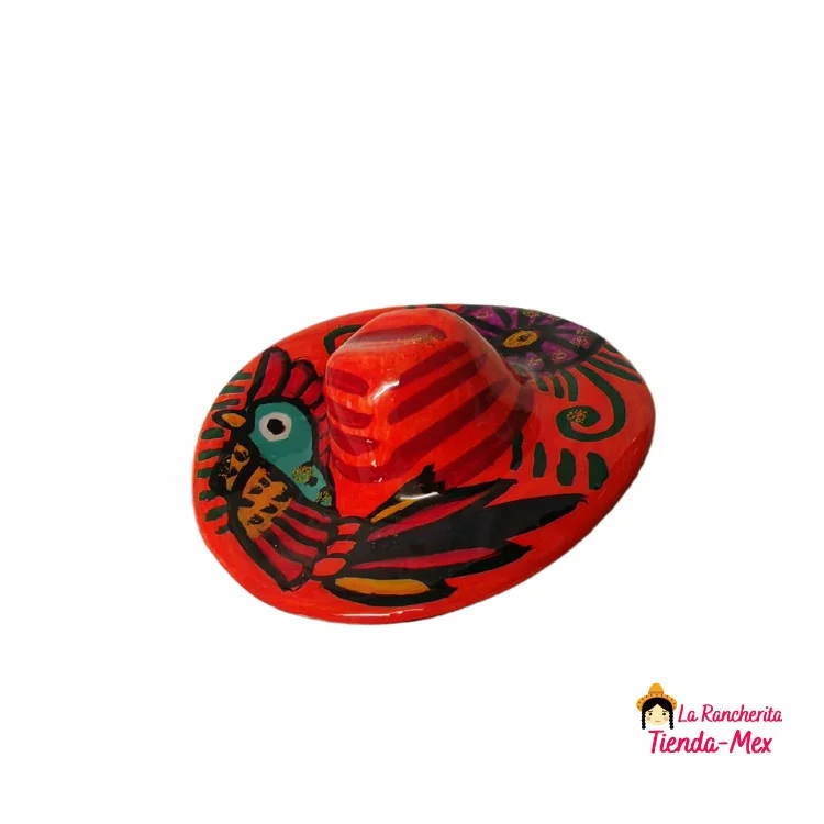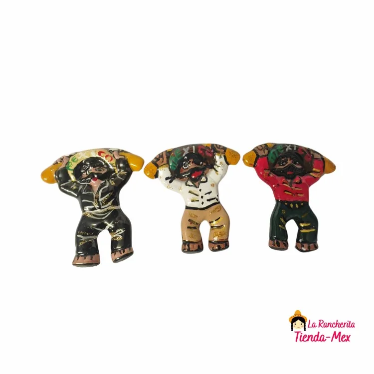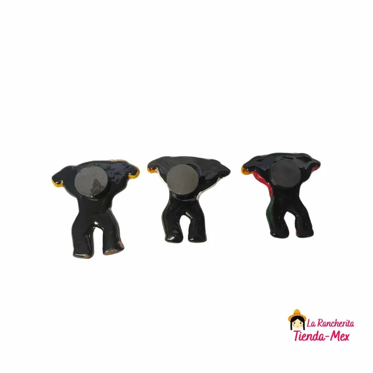 Imán decorativo elaborado en cerámica, pintado a mano con motivos tradicionales mexicanos. Ideal para souvenirs, coleccionistas o como detalle para decoración de refrigeradores, pizarras u otras superficies metálicas.