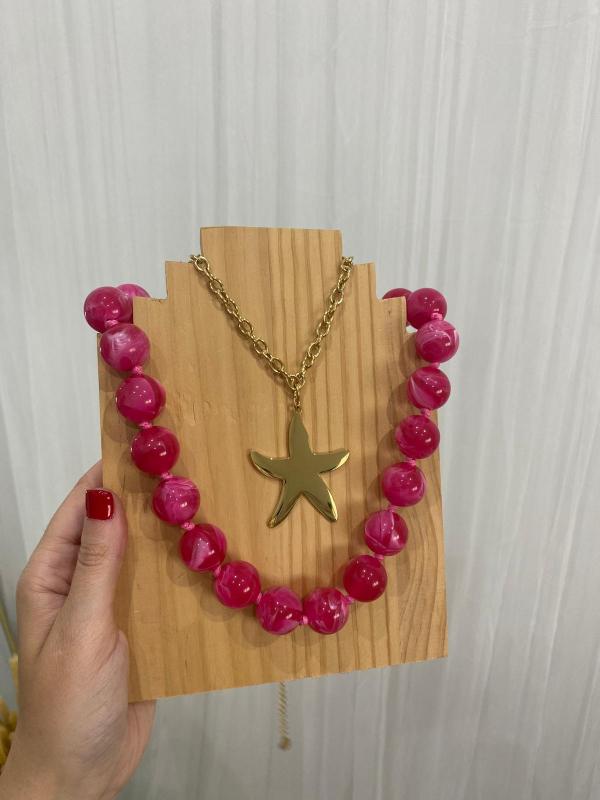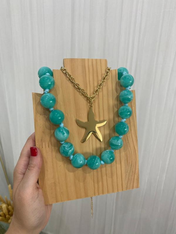 Pack de dos collares con la combinación perfecta. Collar bolas y collar de acero dorado con estrella.
