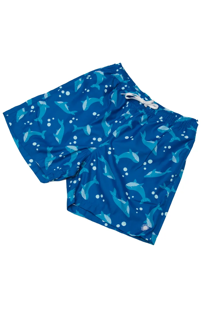 Ropa de baño de papá estilo short con un bolsillo en parte trasera y pitas ajustables en parte delantera. Tela Microtek que cuenta con Tecnología Repel para un rápido secado y protección UPF 50+.