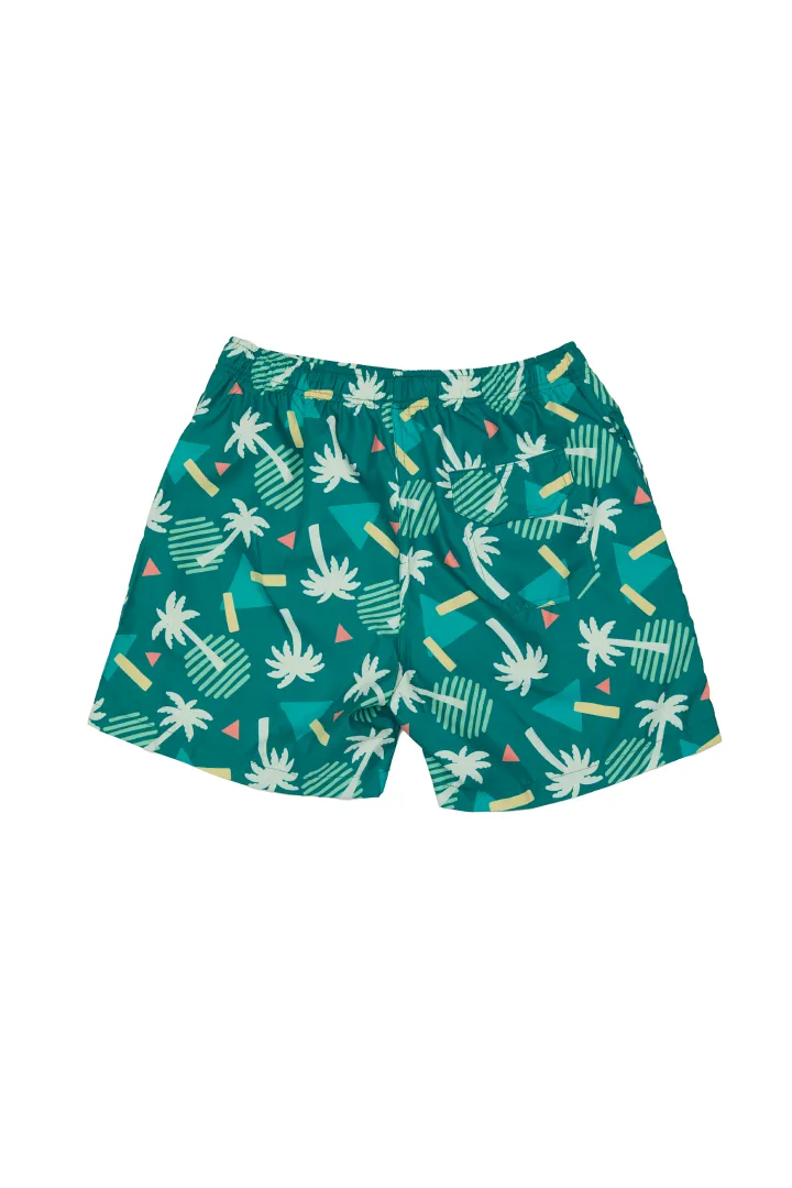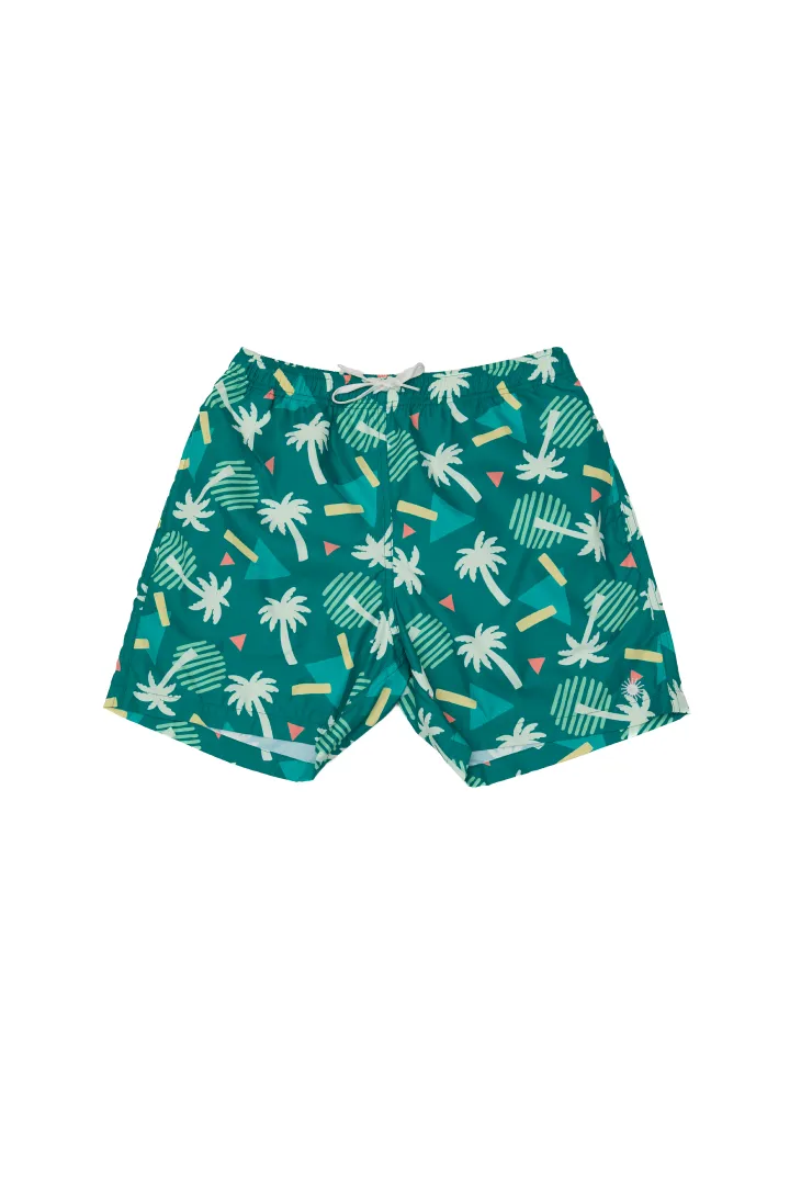Ropa de baño de papá estilo short con un bolsillo en parte trasera y pitas ajustables en parte delantera. Tela Microtek que cuenta con Tecnología Repel para un rápido secado y protección UPF 50+.