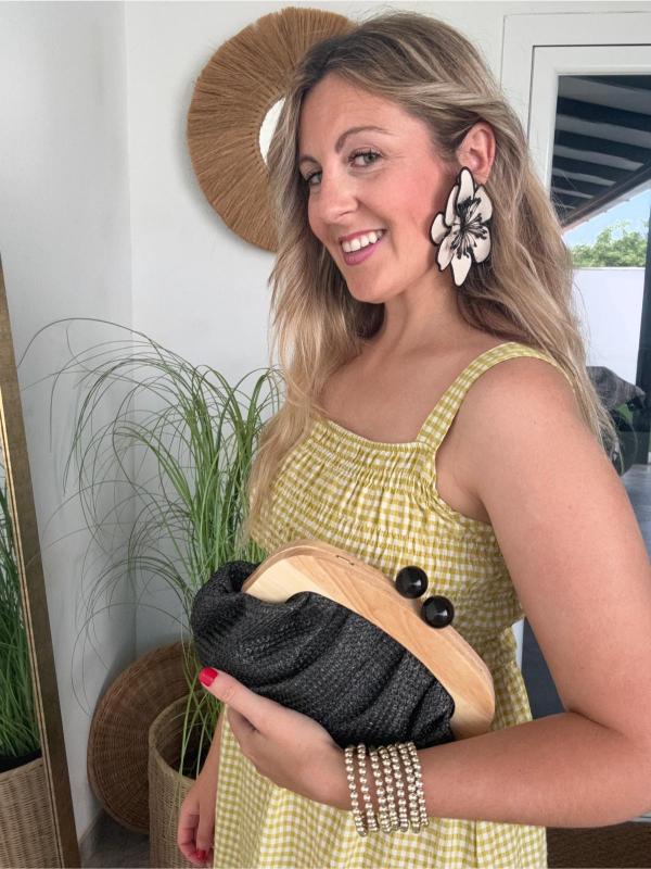 Pendiente de tela de maxi flor blanca roto y negro.  No pesan.