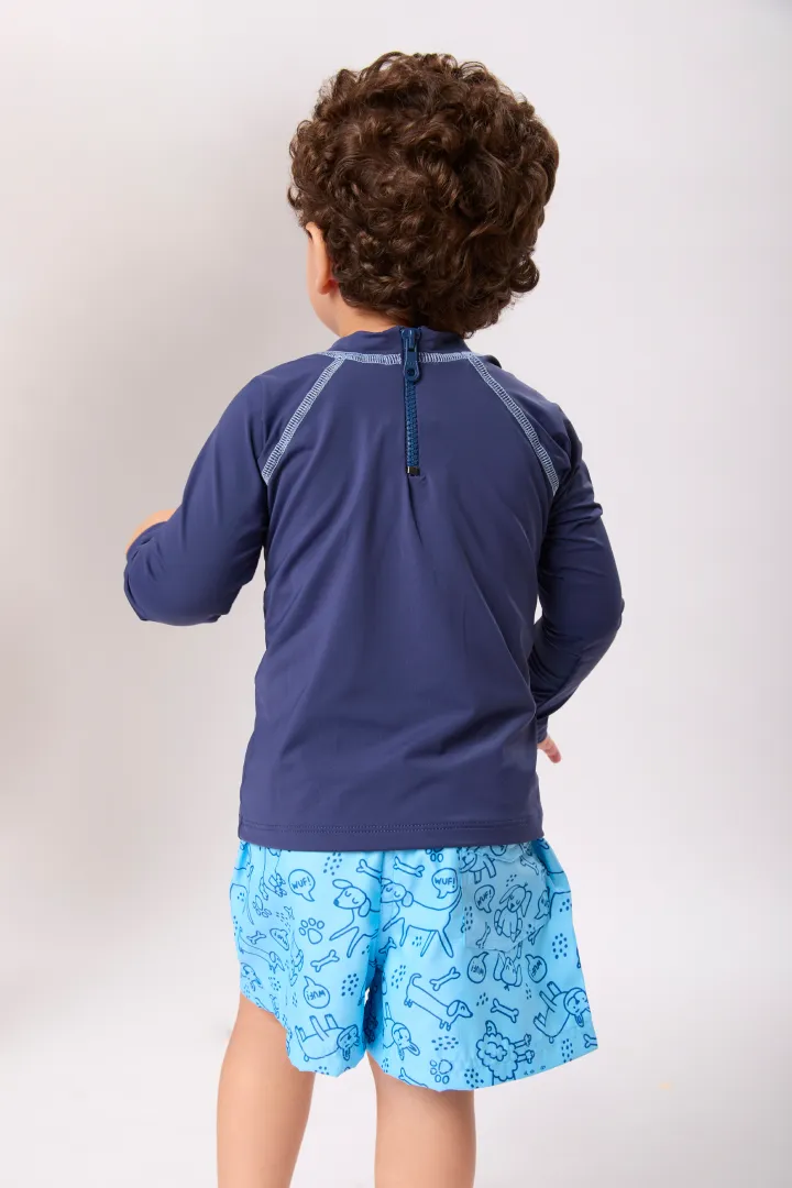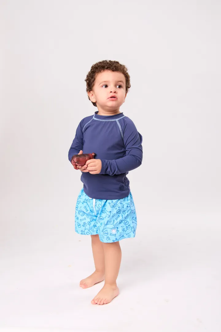 Ropa de baño de niño estilo short con un bolsillo en parte trasera y pitas ajustables en parte delantera. Tela Microtek que cuenta con Tecnología Repel para un rápido secado y protección UPF 50+.