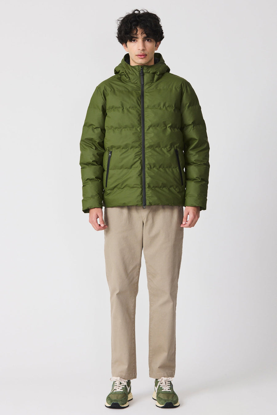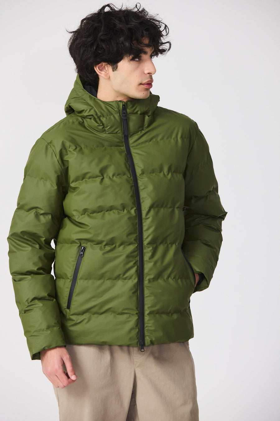 Abrigo impermeable acolchado confeccionado pensando en la comodidad y la calidez, el acolchado Hrom está forrado con una capa aislante transpirable sin plumas y diseñado con cámaras sin costuras. Presenta un cierre con cremallera de doble tirador y bolsillos con cremallera impermeable en contraste. Una interpretación fresca y joven de la ropa deportiva metropolitana.