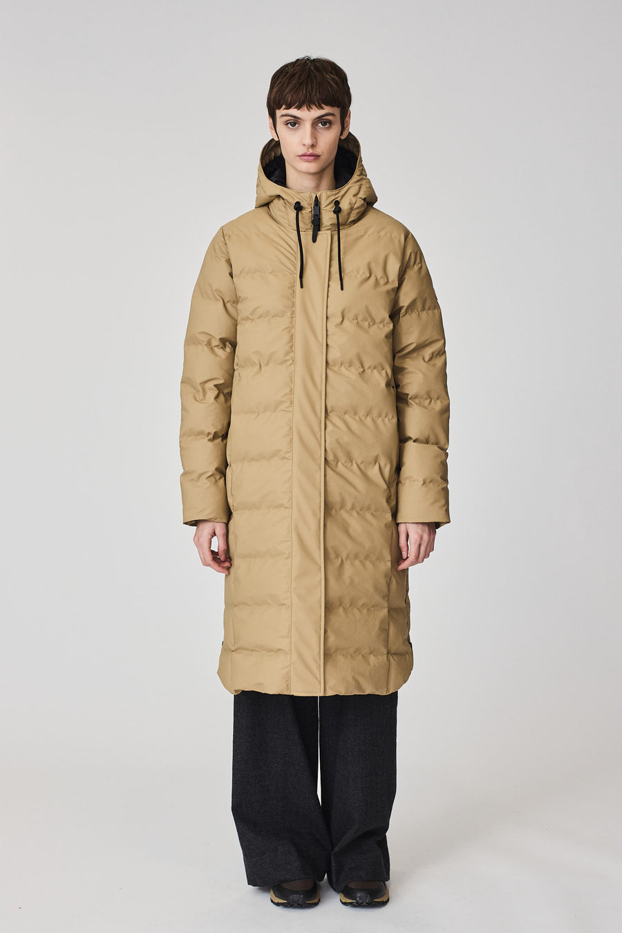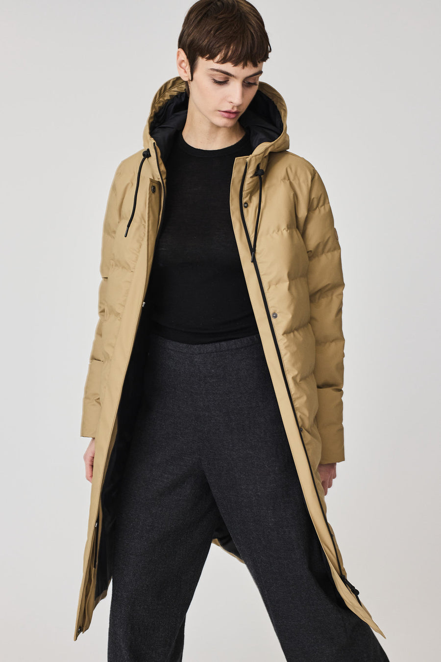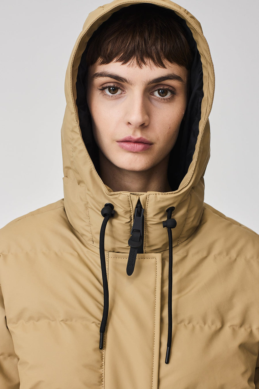 – Cremalleras impermeables en los laterales. Capucha de cordón y cuello alto.