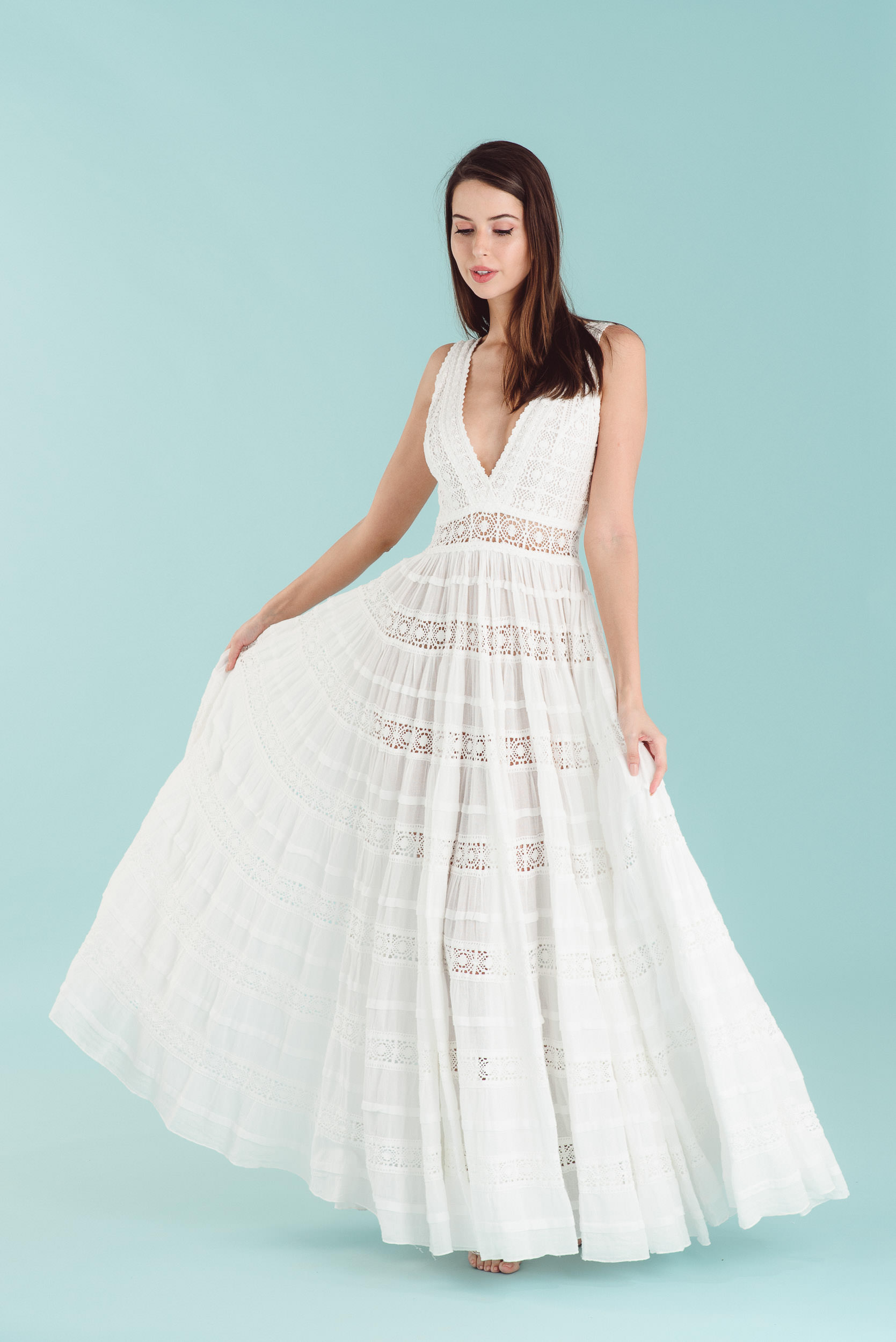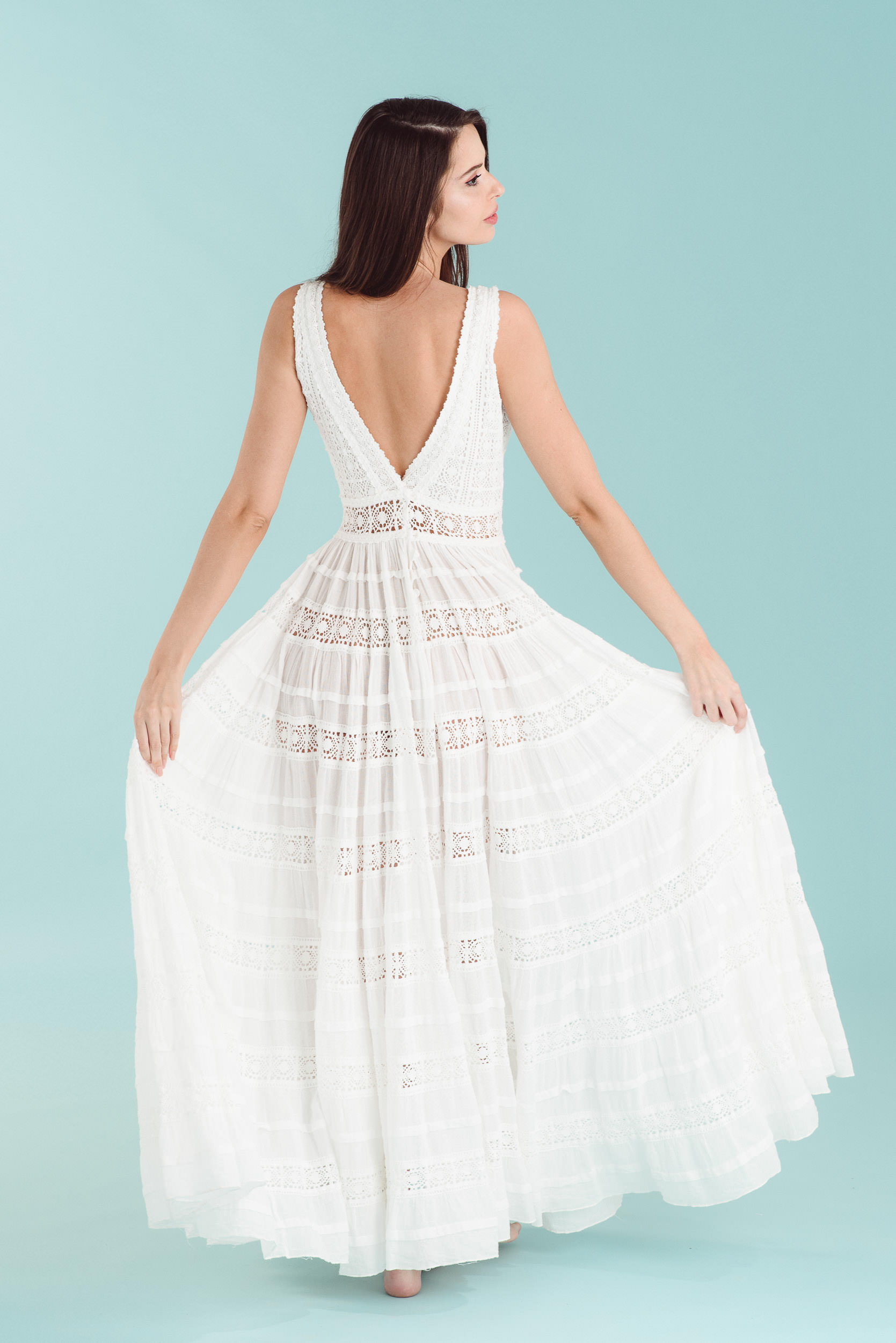 Todas las prendas se fabrican bajo la supervisión de Pepa Bonett, utilizando tejidos naturales de algodón, que posteriormente son cortados, cosidos y teñidos a mano.