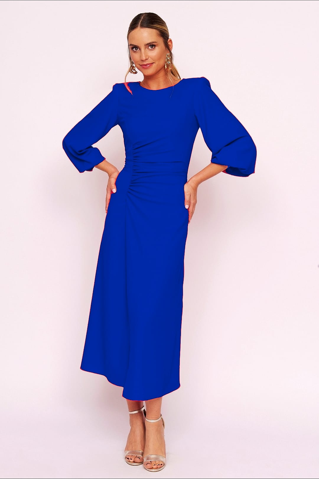 Vestido enterizo, de corte midi, en un precioso tono azulón.